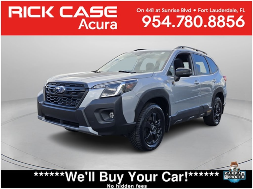 Priced below KBB Fair Purchase Price! CARFAX One-Owner. Clean CARFAX. 10 Year or 100,000 Mile Powertrain Warranty, Leather Seating, Local Trade, Power Moonroof, Reverse Sensing, RainSensing Wipers, Bluetooth, AWD, Not a Rental, Non - Smoker, Great Value, Low Miles, Clean Car, Active Cruise Control, Audio System & Navigation & Power Rr Gate, Auto-Dimming Exterior Mirror w/Approach Lighting, Auto-Dimming Mirror w/Compass & HomeLink, Cargo Sidewall Protector, Ice Silver Metallic Body Side Molding (DIO), Power Rear Gate, Radio: Subaru Starlink 8.0" Multimedia Nav System, Rear Bumper Cover, Wilderness Carpeted Floor Mats, Wilderness Door Scuff Protector, Wilderness Front Side Sill Plates, Wilderness Package, Wilderness Rear Seatback Protector, Wilderness Rear Seatback Protector (DIO), Wilderness Splash Guards, Wilderness Splash Guards (DIO). Ice Silver Metallic 2022 Subaru Forester Wilderness AWD Lineartronic CVT 2.5L 4-Cylinder DOHC 16V